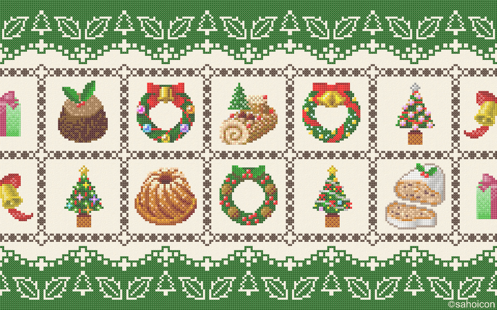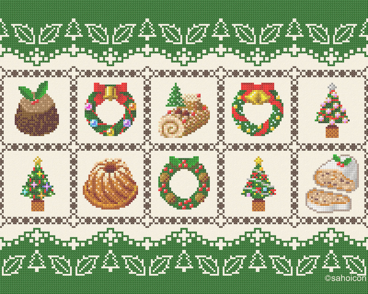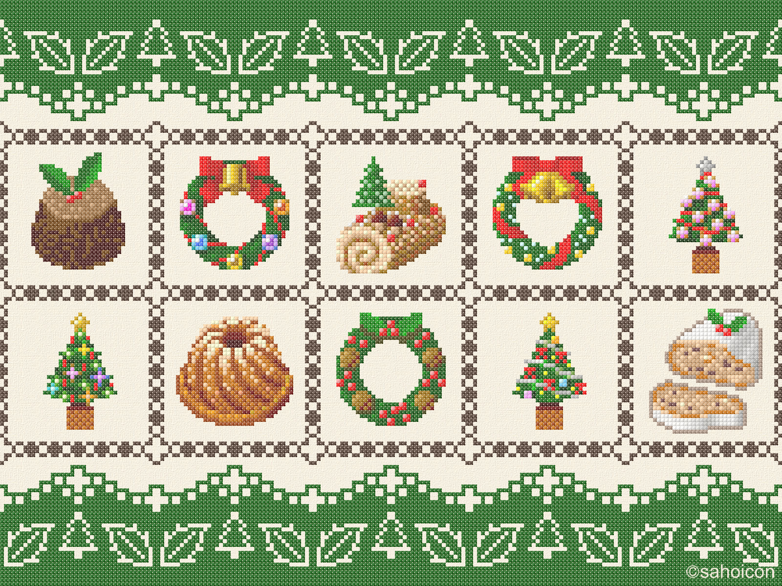 刺繍(クロスステッチ)で図柄を描いた壁紙です。