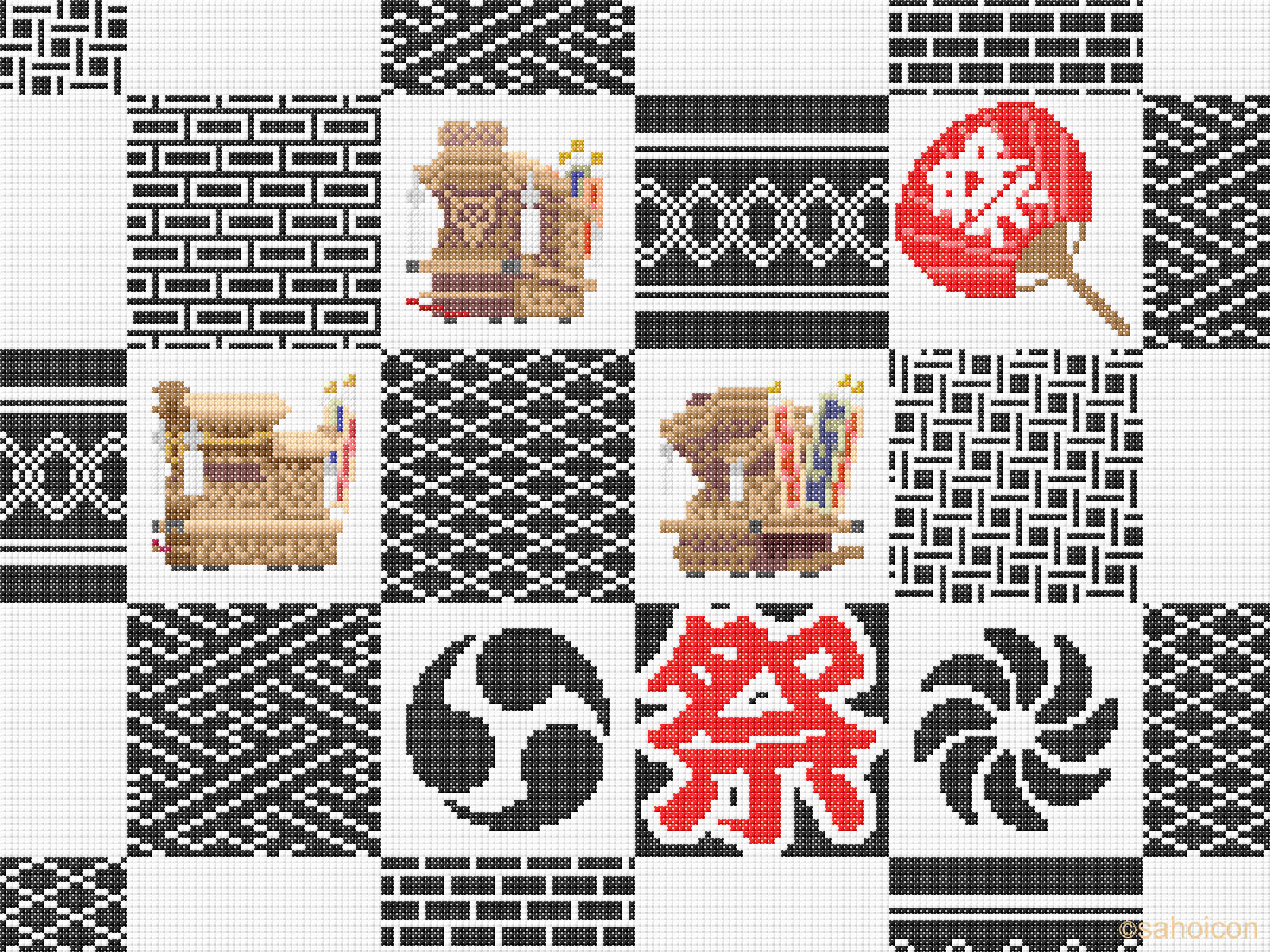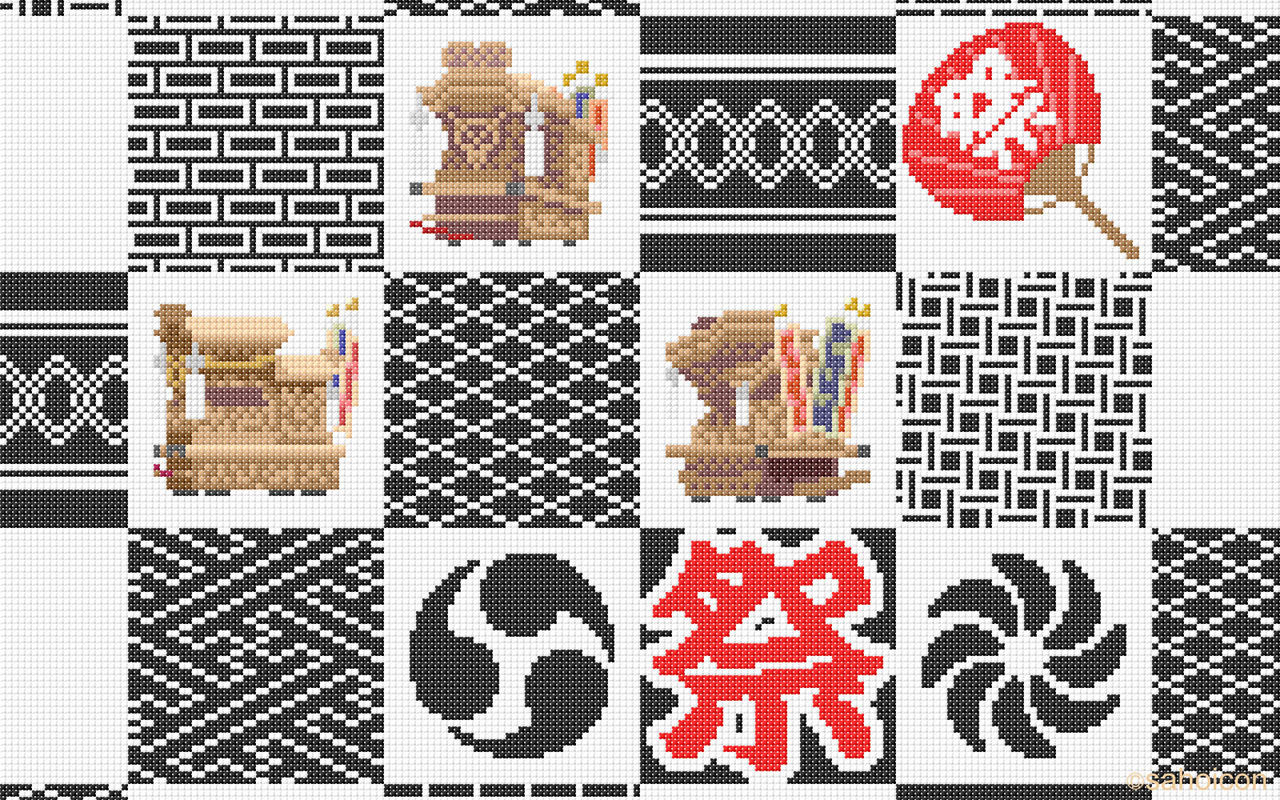 刺繍(クロスステッチ)で図柄を描いた壁紙です。