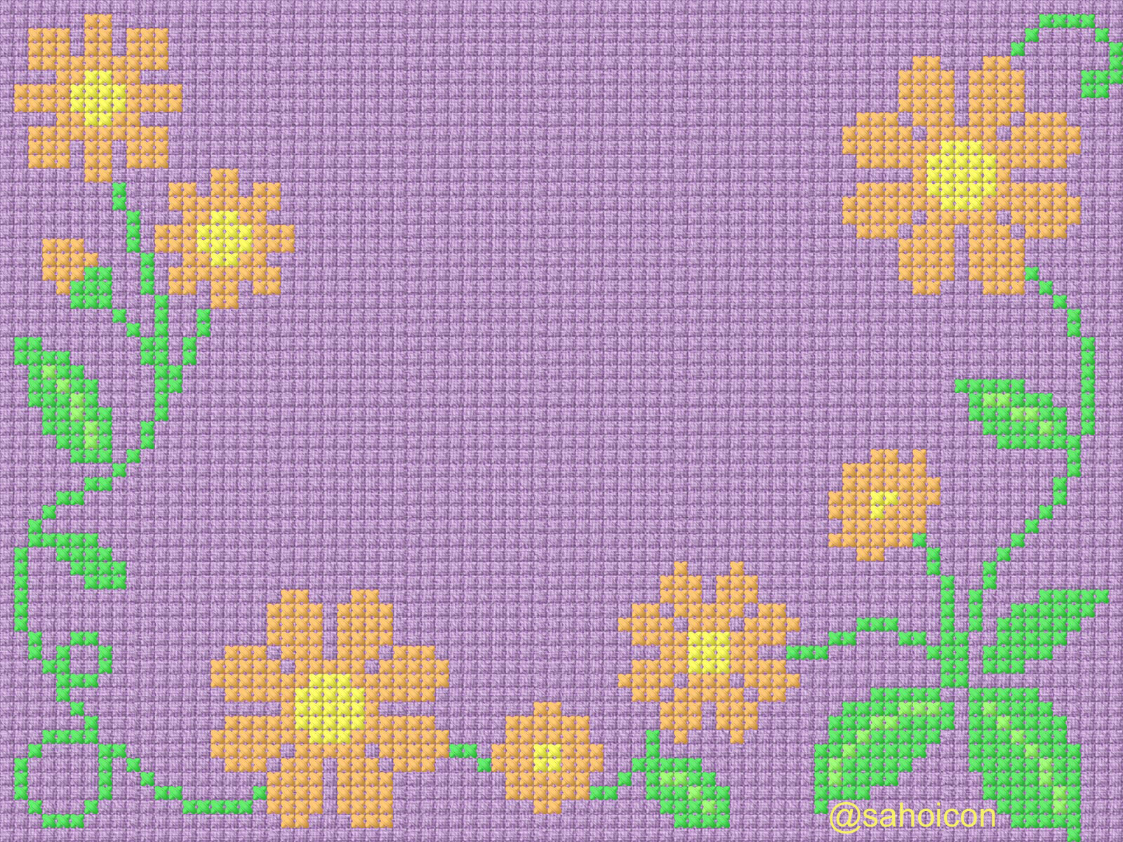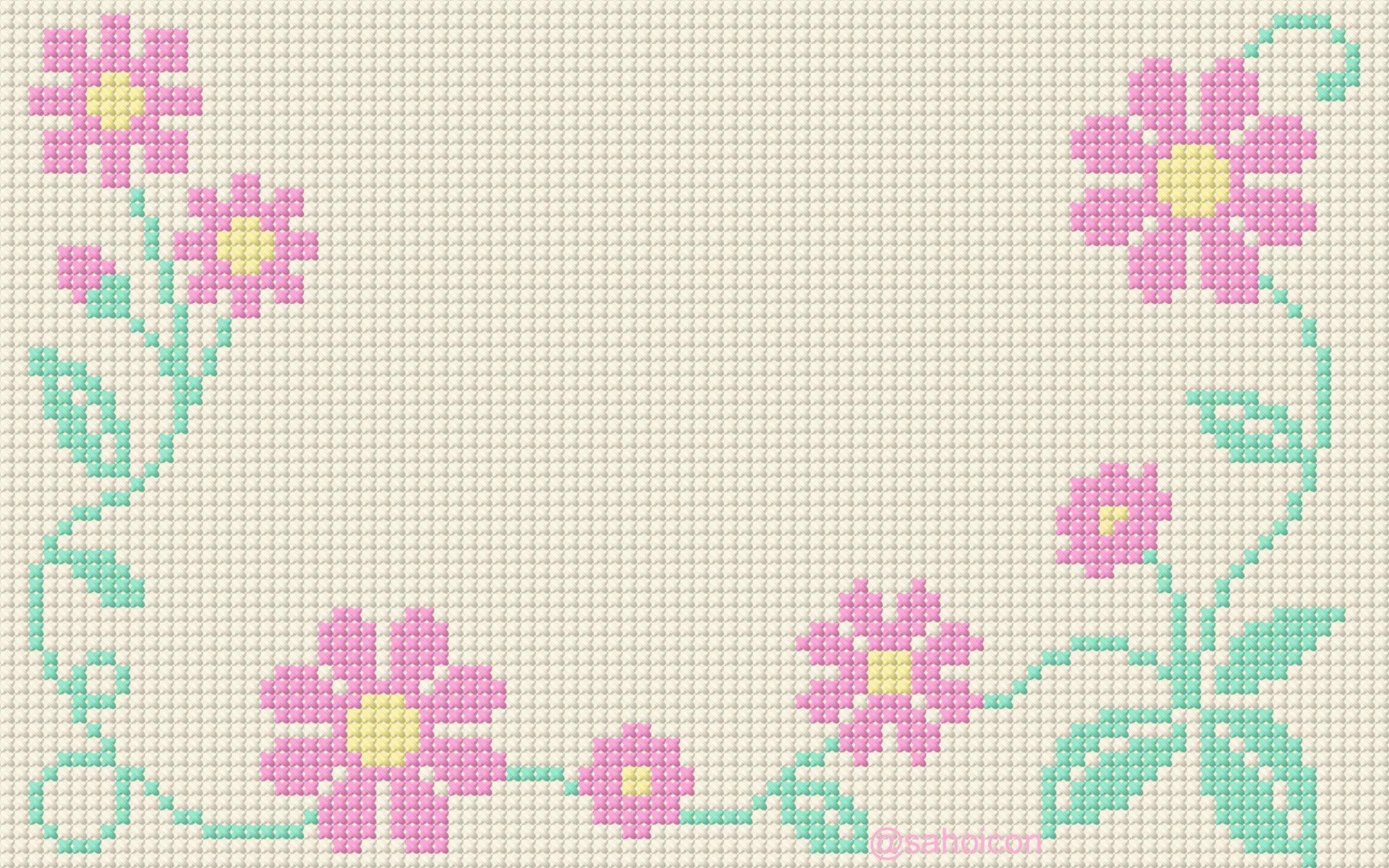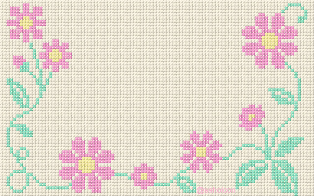 刺繍(クロスステッチ)で図柄を描いた壁紙です。