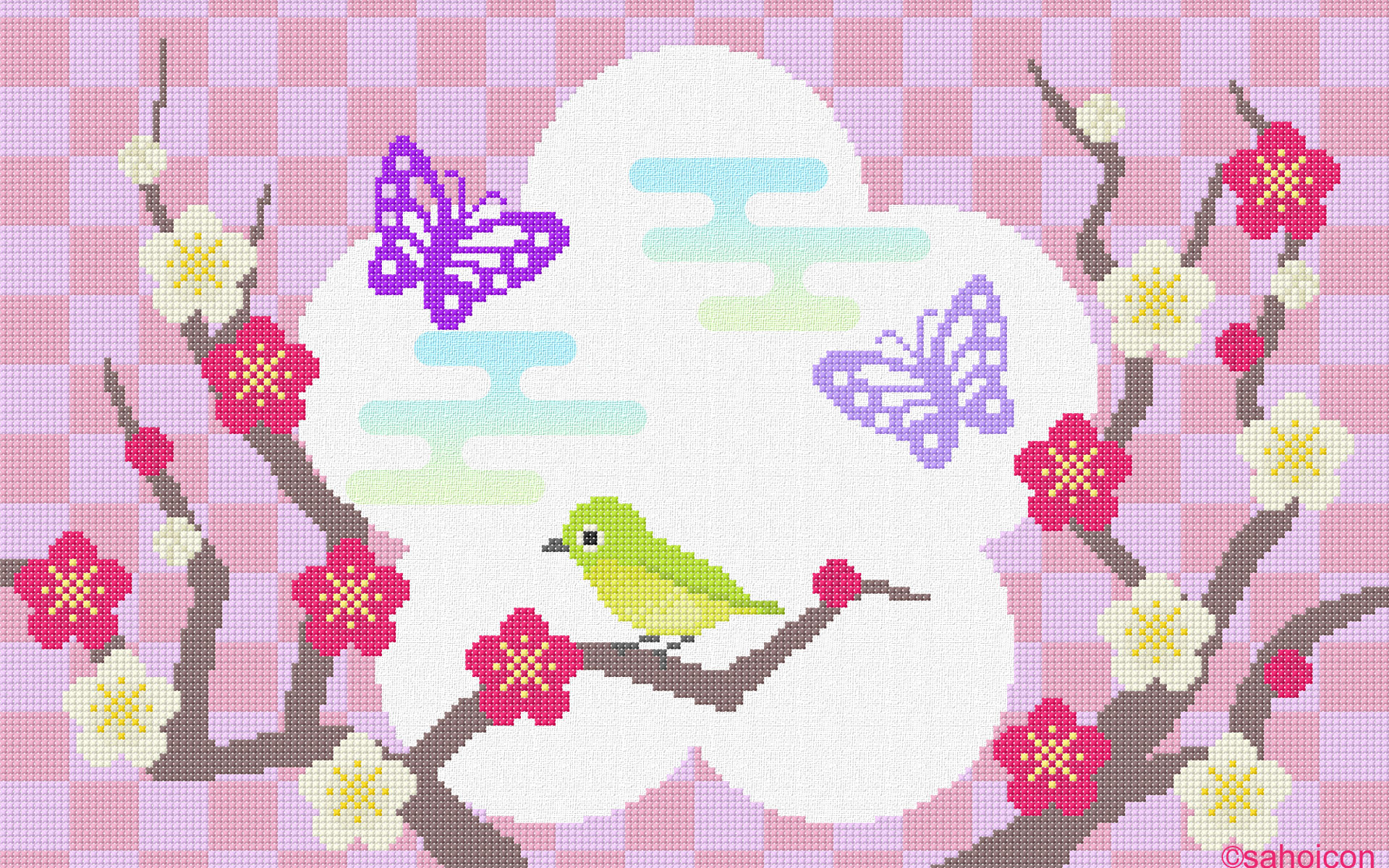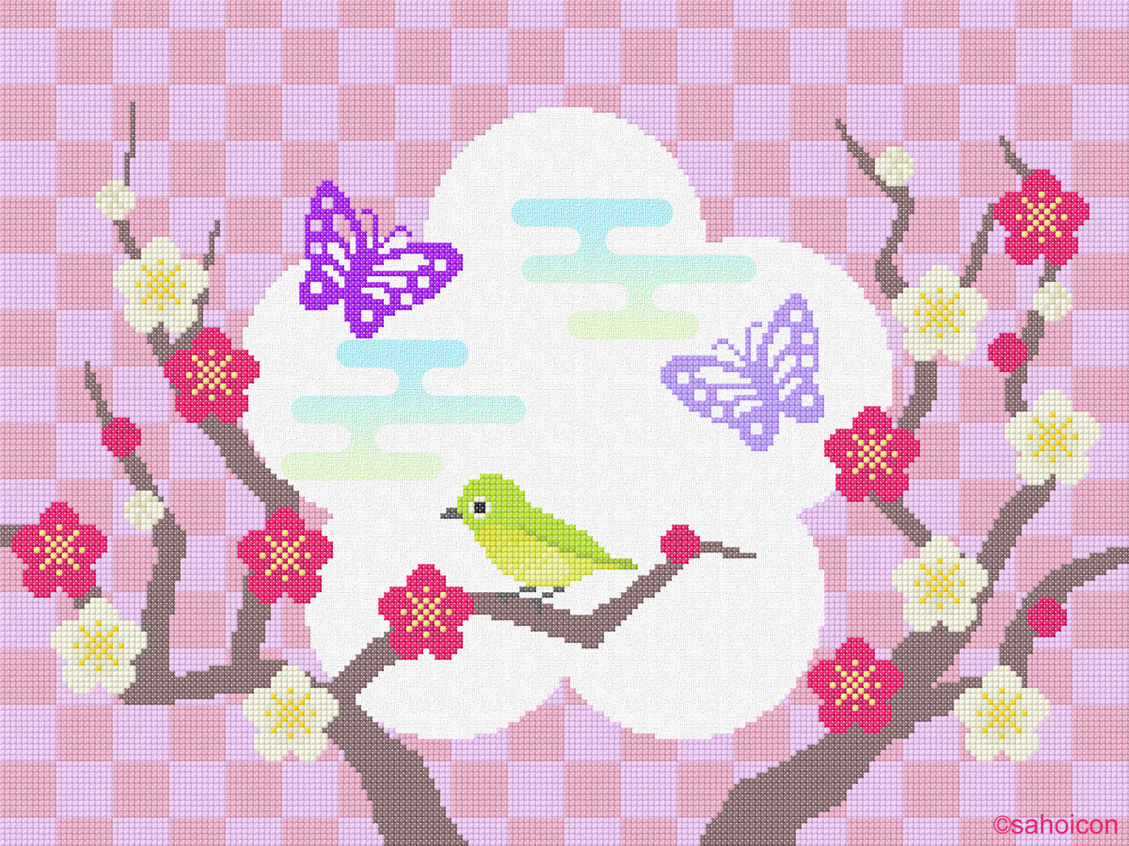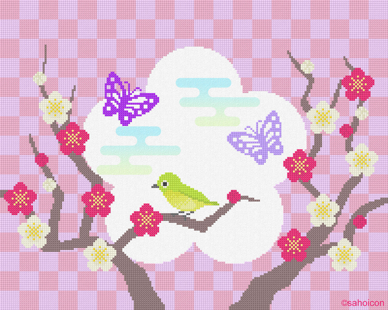 刺繍(クロスステッチ)で図柄を描いた壁紙です。