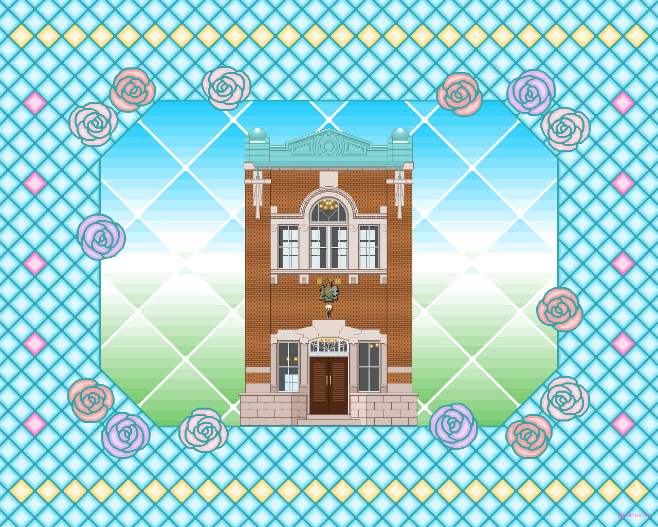 また、今回は元々待受画像用に制作したため、建物の大きさがそれに合わせたサイズでしか作られていません。1024x768pixelの方は等倍ですが、1920x1200pixelの方は960x600pixelの画像を2倍に拡大したものです。ご了承ください。